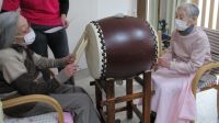こころのお正月は黒田節を歌い、太鼓を叩きます。